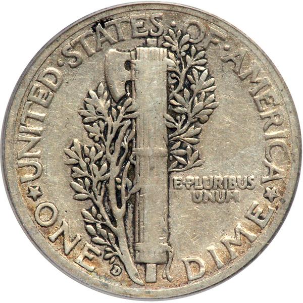 1916-D Mercury Dime. PCGS graded Fine-12 PQ. A nice key date that has claims to a VF grade. Only 264,000 minted (PCGS # 4906) .
