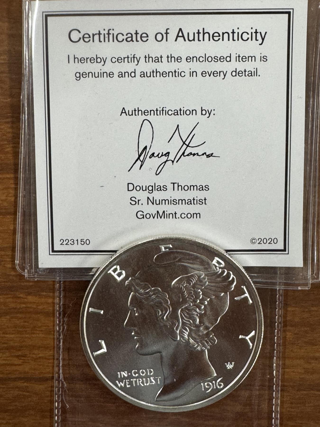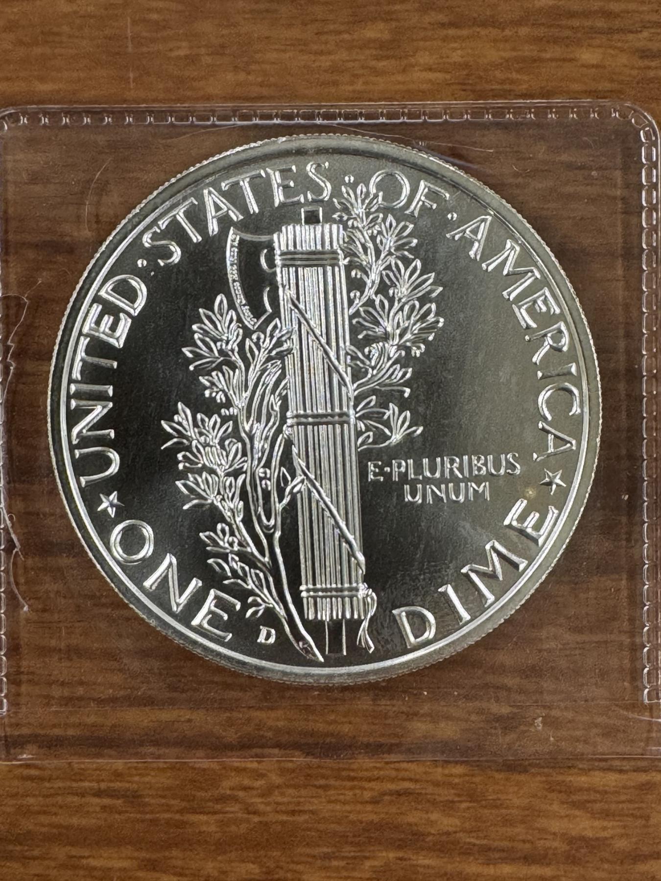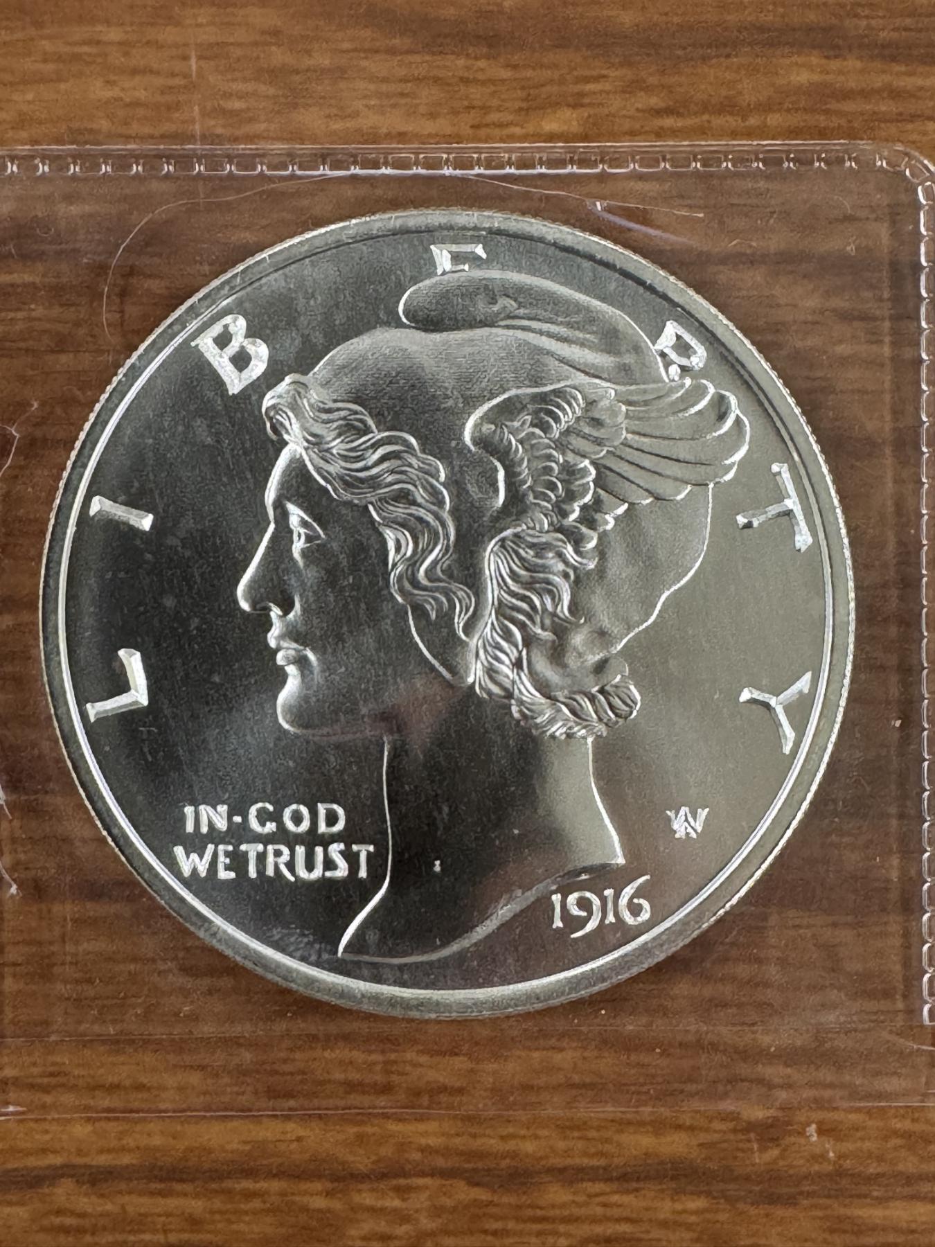 1916-D Mercury Dime 2 Troy Ounce .999 Fine Silver-Mint Condition