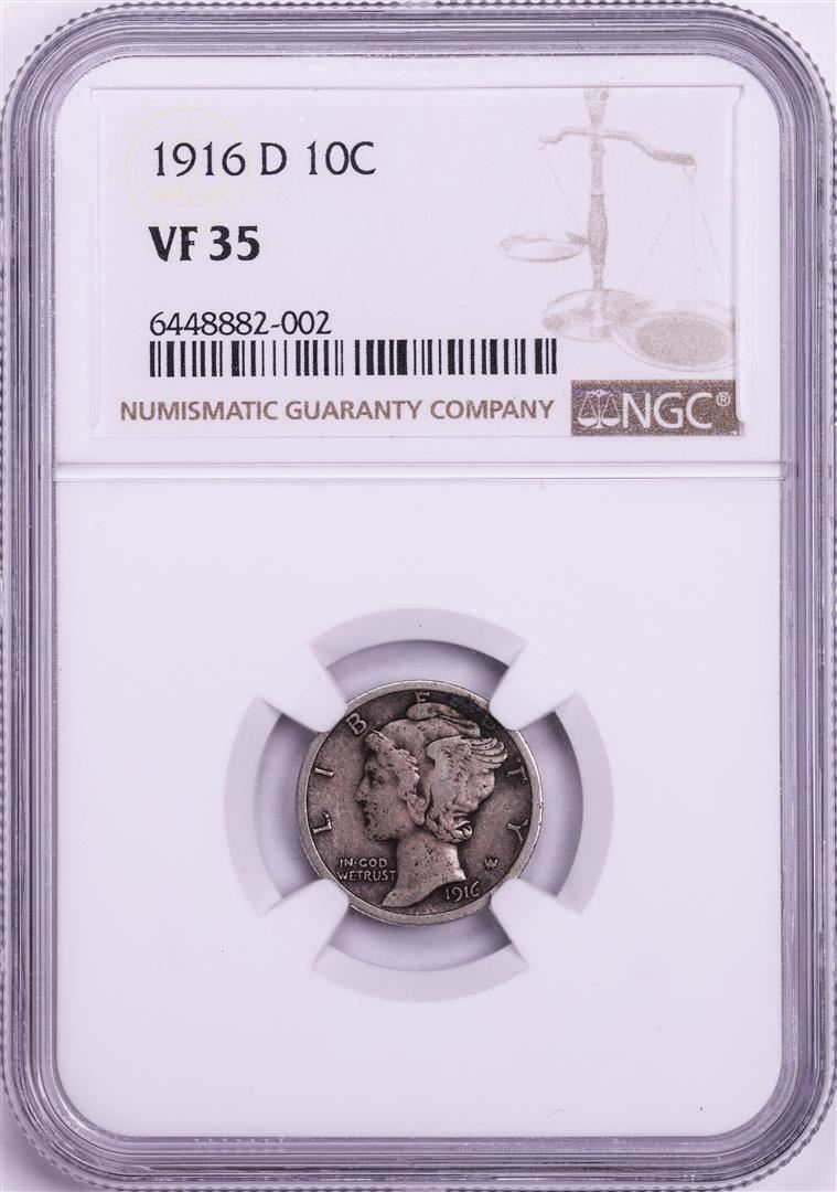 One 1916-D Mercury Dime Coin NGC VF35. NGC Certified.