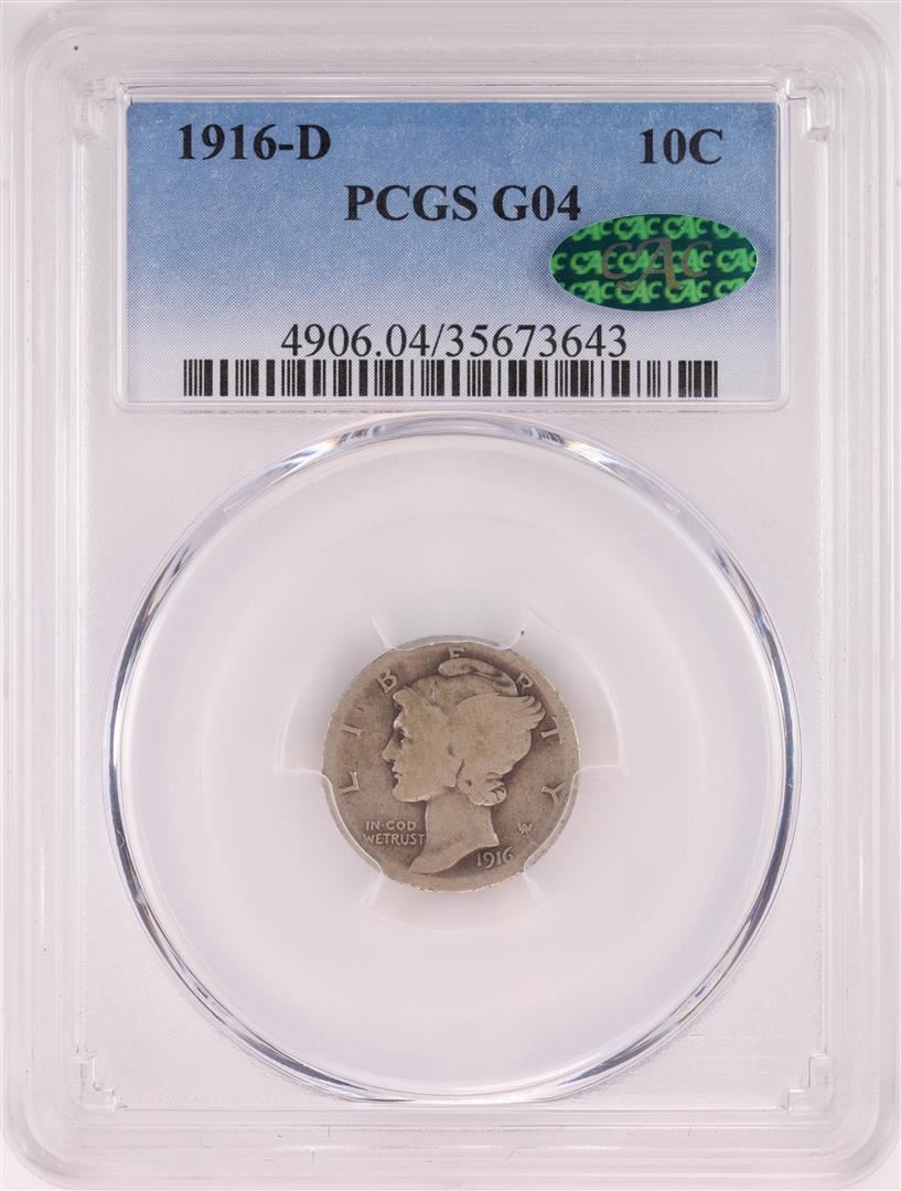 One 1916-D Mercury Dime Coin PCGS G04 CAC. PCGS Graded.