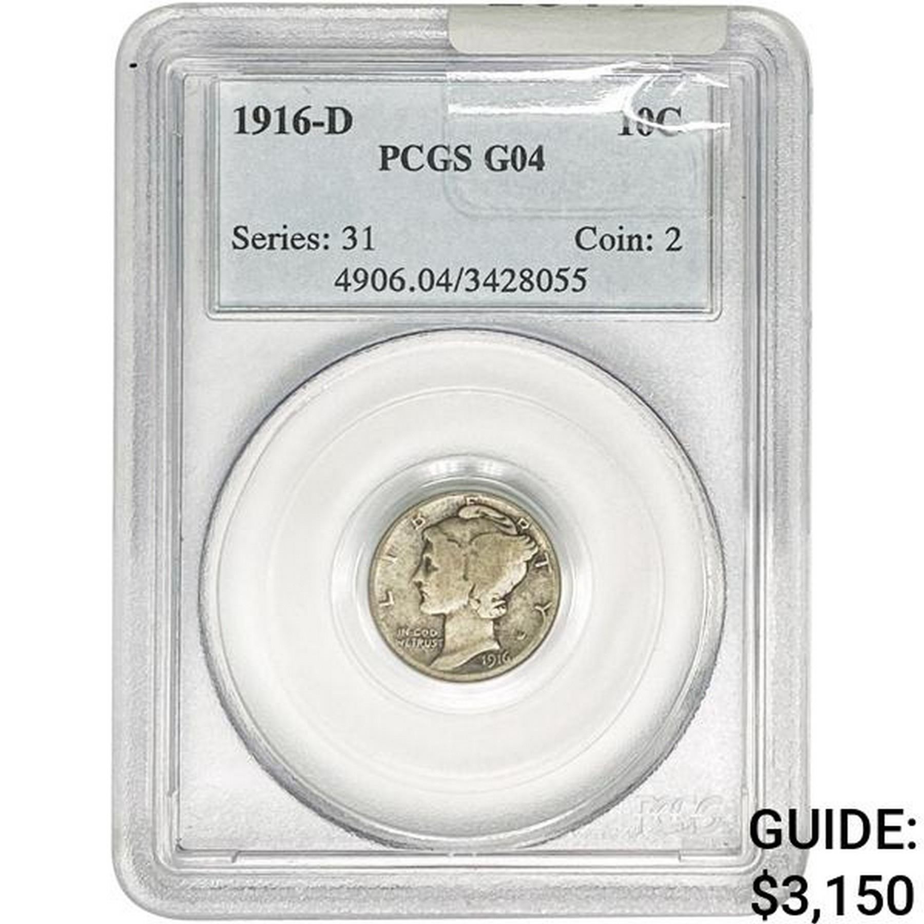 1916-D Mercury Silver Dime PCGS G04