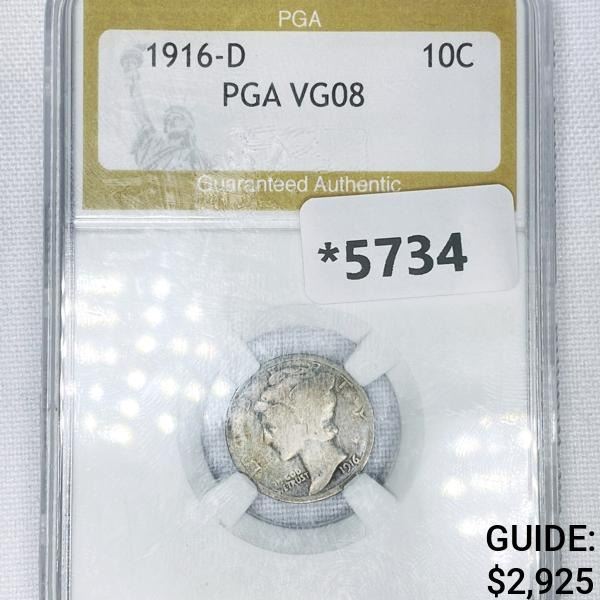 1916-D Mercury Silver Dime PGA-VG8
