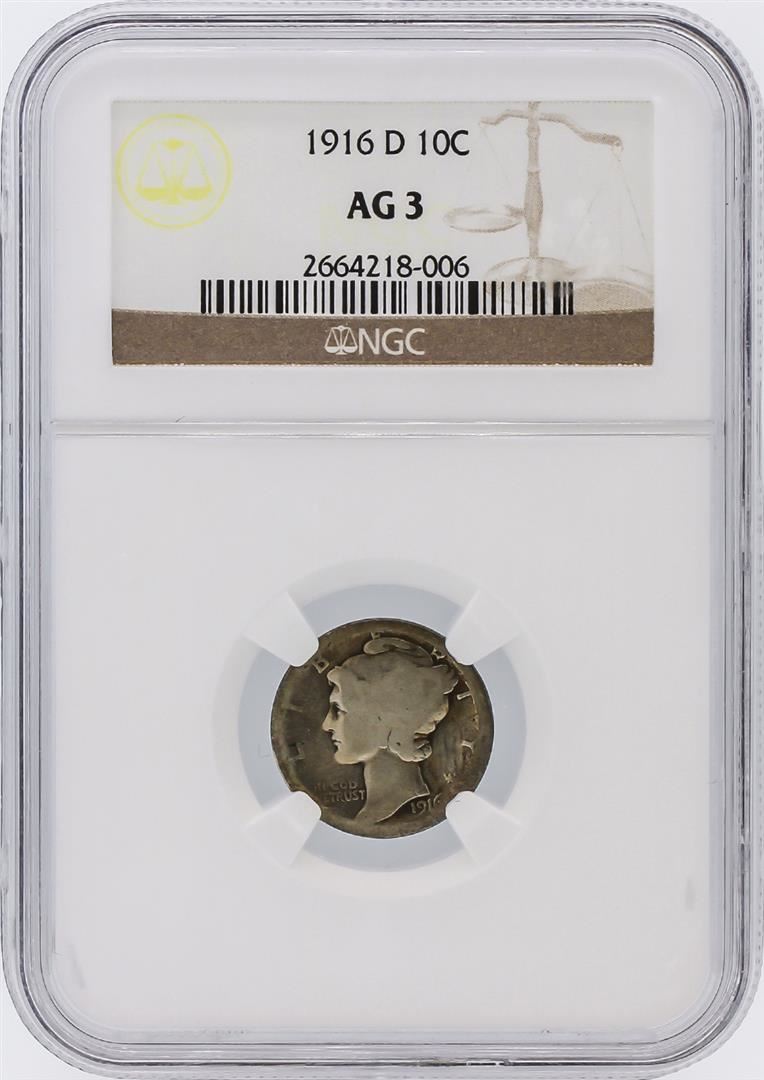 One 1916-D NGC AG3 Mercury Dime. NGC Certified.