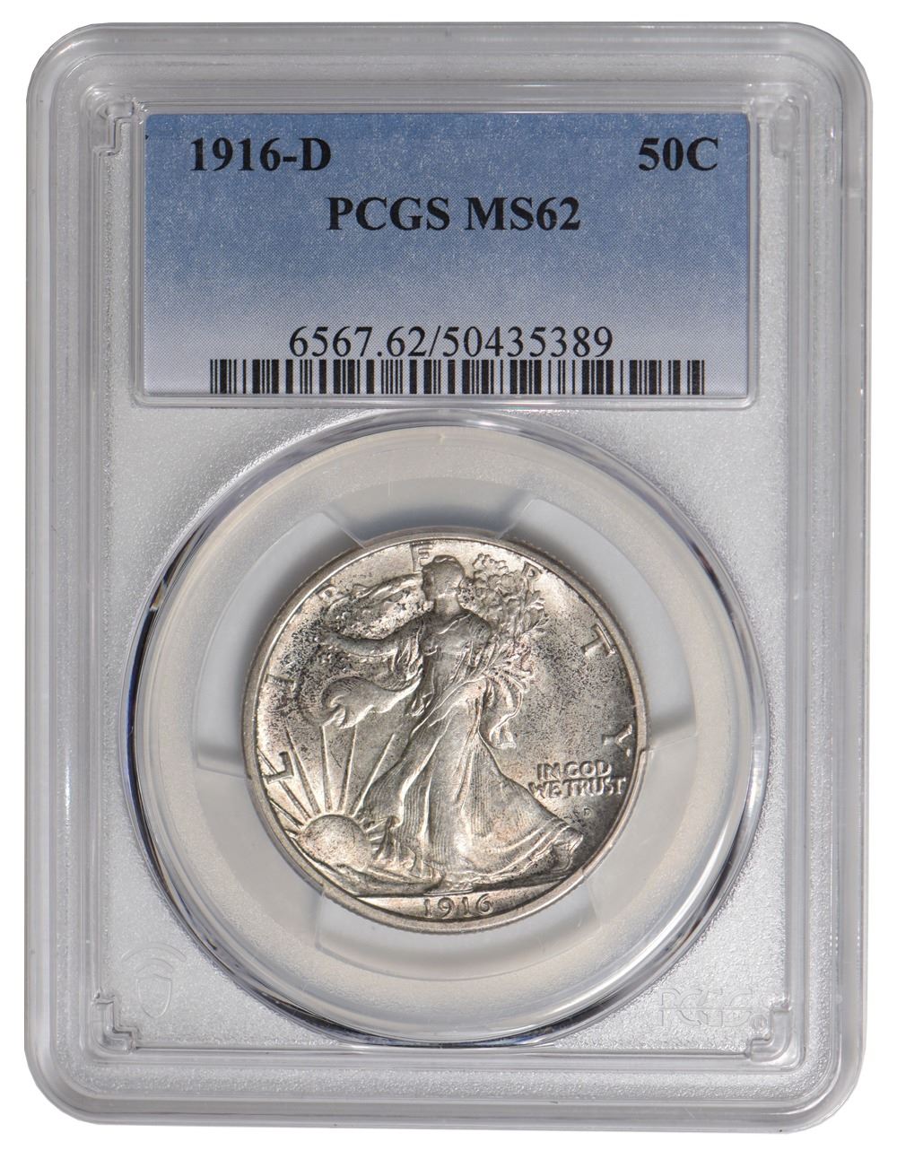 One 1916-D Walking Liberty Half Dollar PCGS MS62.