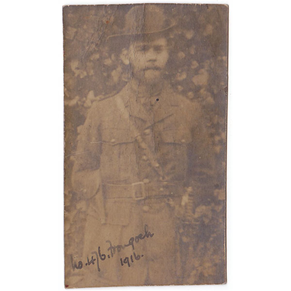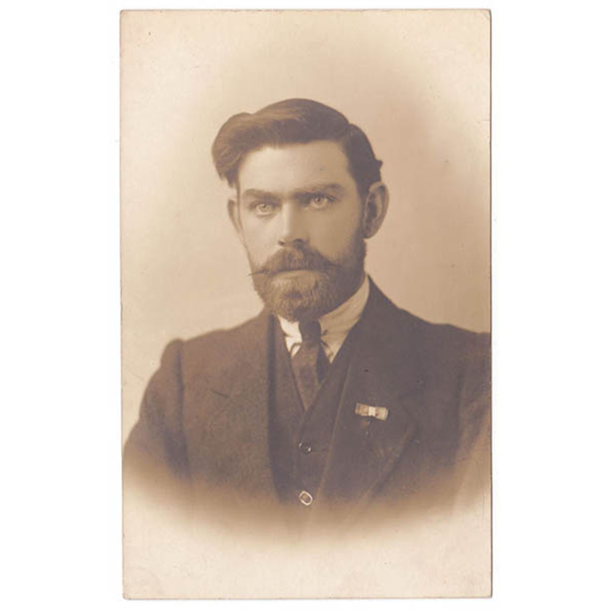 Photographic postcard of Diarmuid Lynch, member of the IRB and one of the main organisers of the 1916 Rebellion in civilian clothes. Photographic postcard of his brother Michael, staff Captain Cork IRA in civilian clothes and a smaller photograph of Michael in Irish Volunteers officers uniform with contemporary note in ink to front "No 476 Frongoch 1916". An interesting collection relating to the County Cork brothers. (3 items)