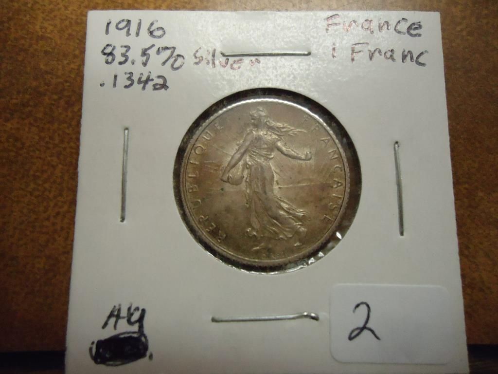1916 FRANCE SILVER 1 FRANC .1342 OZ. ASW
