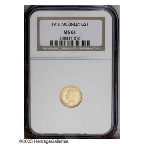 1916 G$1 MCKIN MS61 NGC.From The Lexington Collection. 1916[G$1] McKinley MS61 NGC.