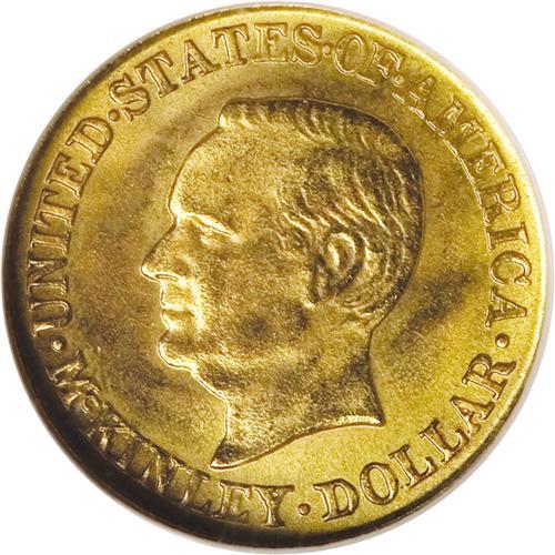 1916 G$1 McKinley MS66 NGC. Subtle, swirling peach-gol