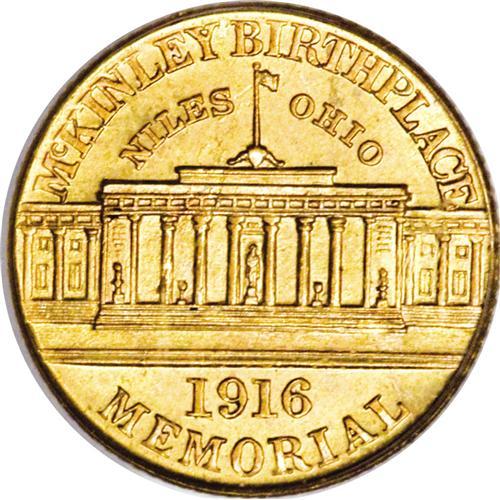 <B>1916 G$1 McKinley MS66 PCGS.</B></I> Emily Mullins, a <I>Coin World</B></I> staff writer, wrote in the April 17, 2006 issue that while the McKinley Memorial gold dollars "are forgettable among early United States commemorative coins, ... proceeds from the coins did help in the creation of the William McKinley Birthplace Memorial, which has since become a popular tourist attraction in honor of the late president." Variegated apricot-gold and mint-green patina adorns the highly lustrous and well preserved surfaces of this attractive Premium Gem, and a well executed strike has resulted in sharply defined motifs.<BR><BR><b>Shipping:</b> Coins & Currency (<a target="_blank" href="http://www.heritageauctions.com/common/shipping.php">view shipping information</a>)