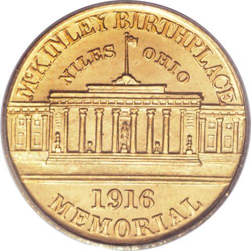 <B>1916 G$1 McKinley MS66 PCGS.</B></I> The smooth, lustrous surfaces are devoid of any noticeable abrasions. Both sides also show a subtle interplay of lilac and light reddish-gold color. The Greco-Roman memorial built to honor William McKinley is fully defined on the reverse, and the obverse is similarly well detailed. The 1916 is the more frequently encountered of the two years this design was produced.<BR><BR><b>Shipping:</b> Coins & Currency (<a target="_blank" href="http://www.heritageauctions.com/common/shipping.php">view shipping information</a>)