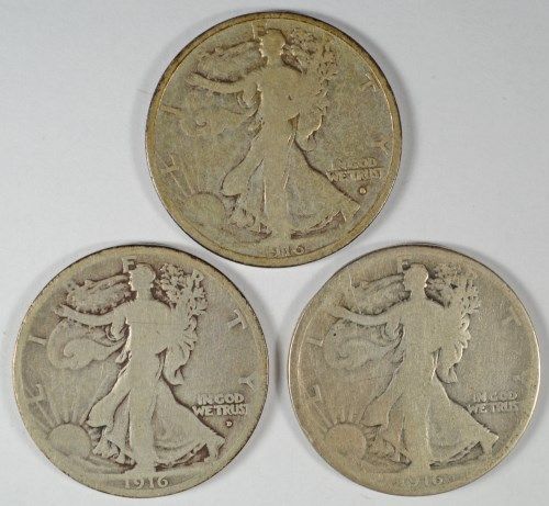 1916 GOOD, 1916-D VG & 1916-S VG WALKING LIBERTY HALF DOLLAR