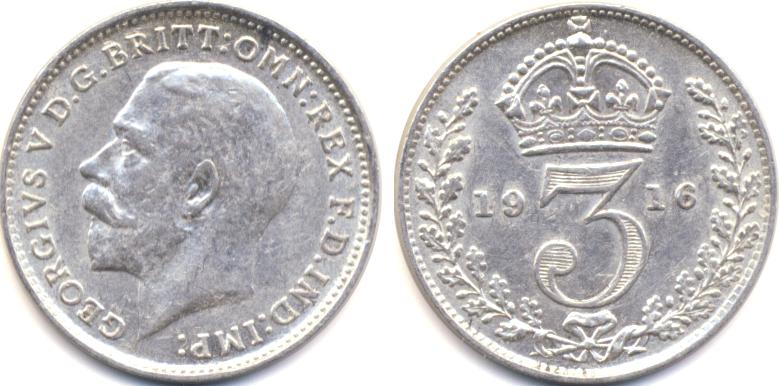 1916 GREAT BRITIAN SILVER 3 PENCE-CIRC