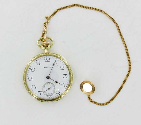 Well running near new piece; Clean 14k case and face with 14k chain fob; total gold value alone over $1000