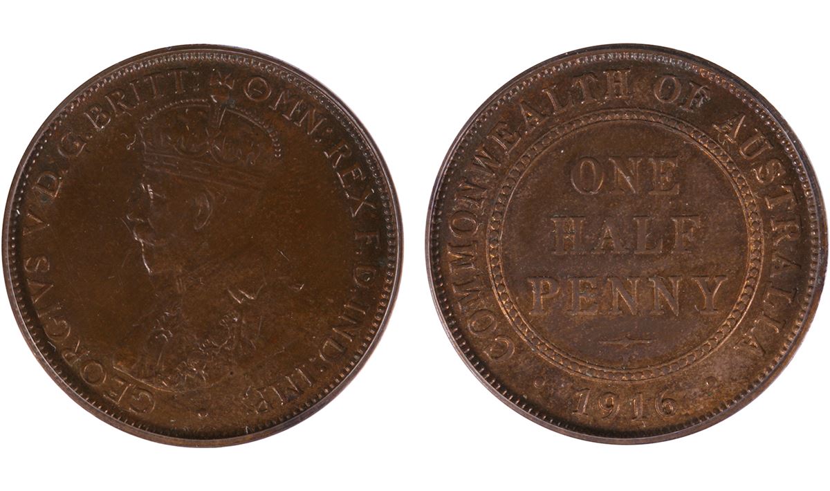 1916-I Australian KGV Half Penny - PCGS MS64BN