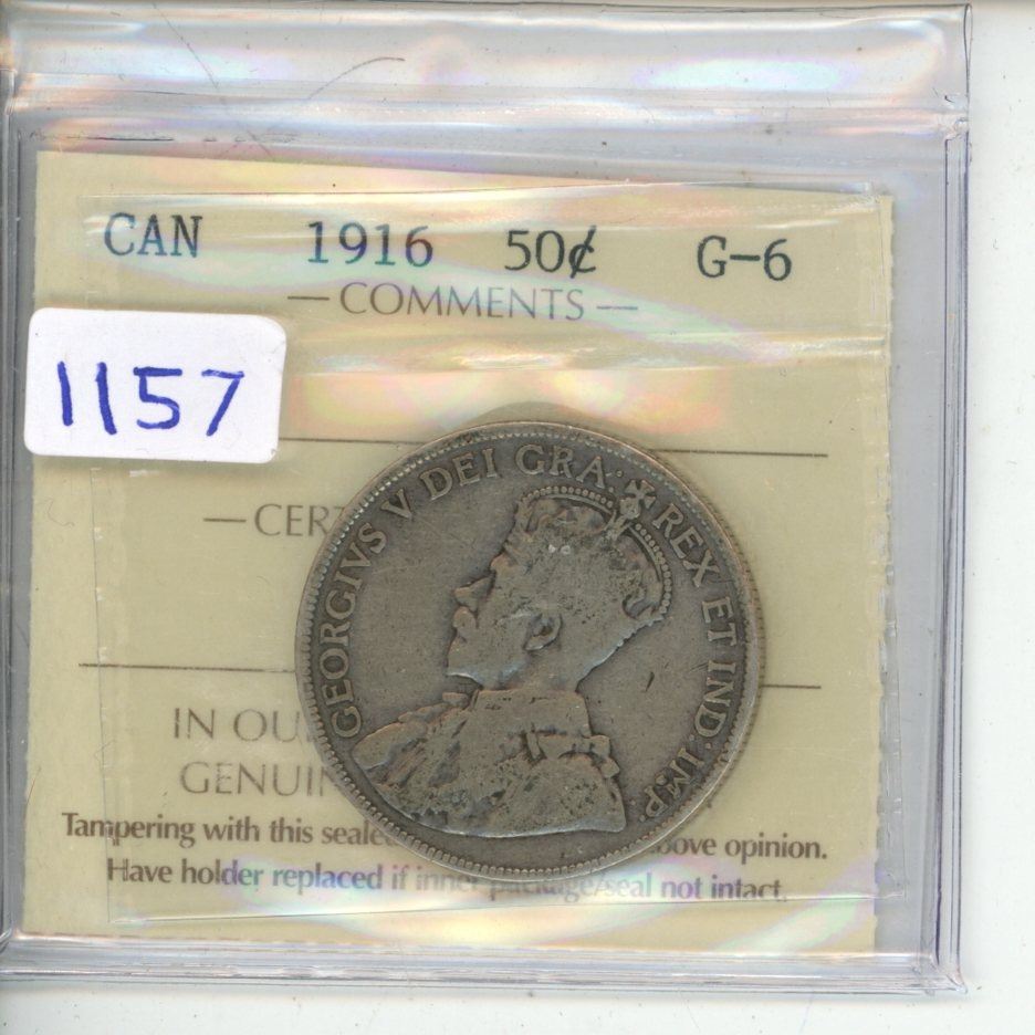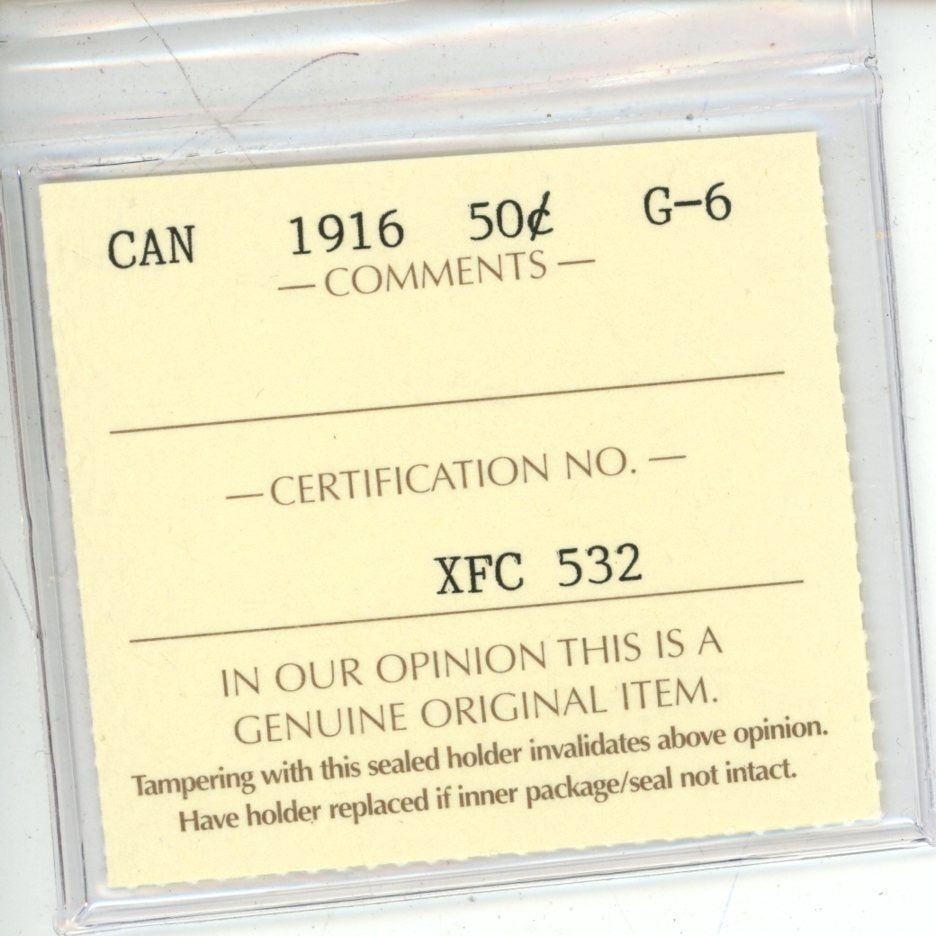 1916 ICCS Graded - Canadian Fifty Cent - G6