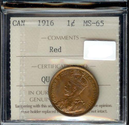 1916 ICCS MS65 Red, 80% red lustre. Scarce this nice!