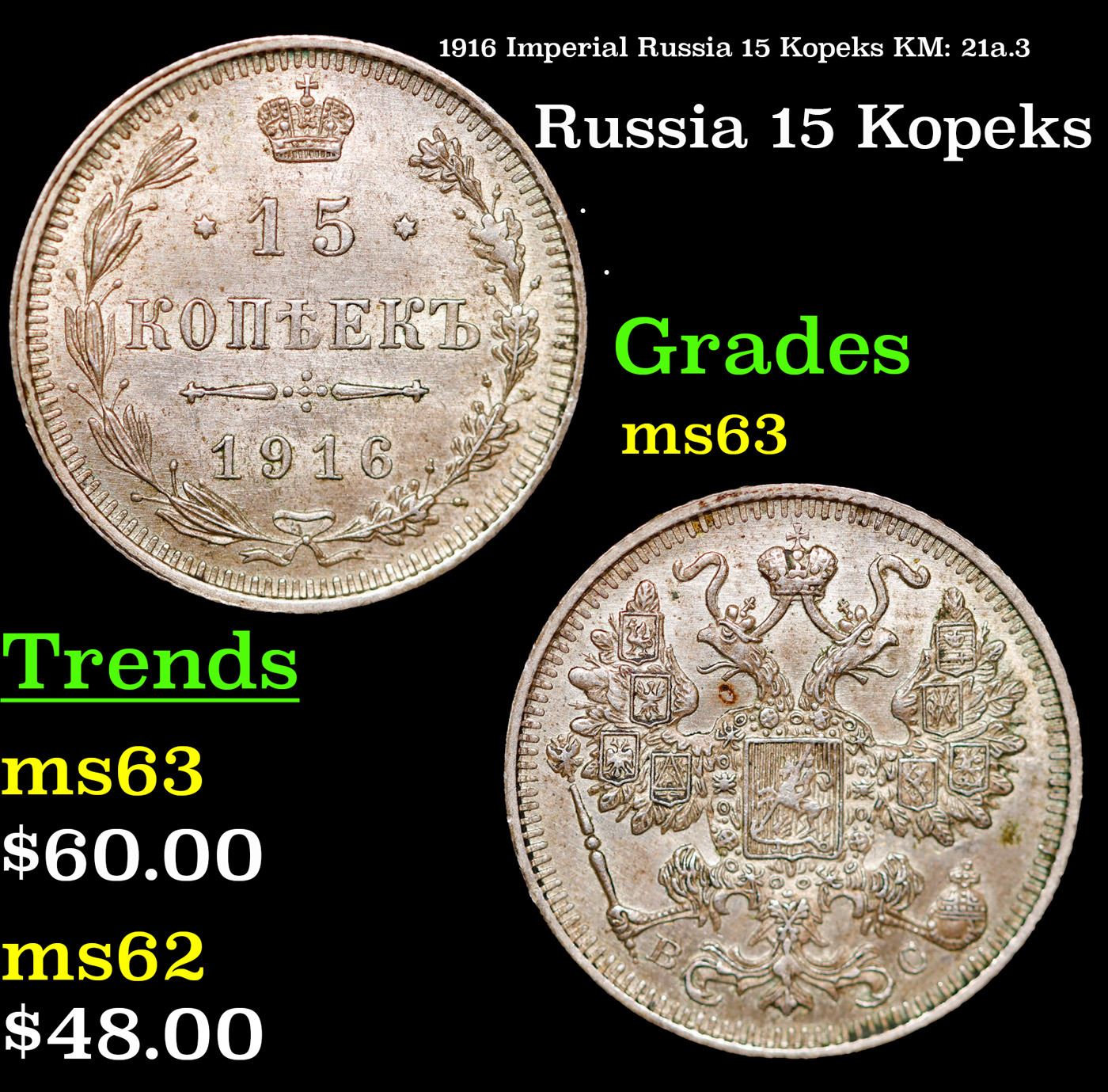1916 Imperial Russia 15 Kopeks KM: 21a.3 Grades Select Unc.
