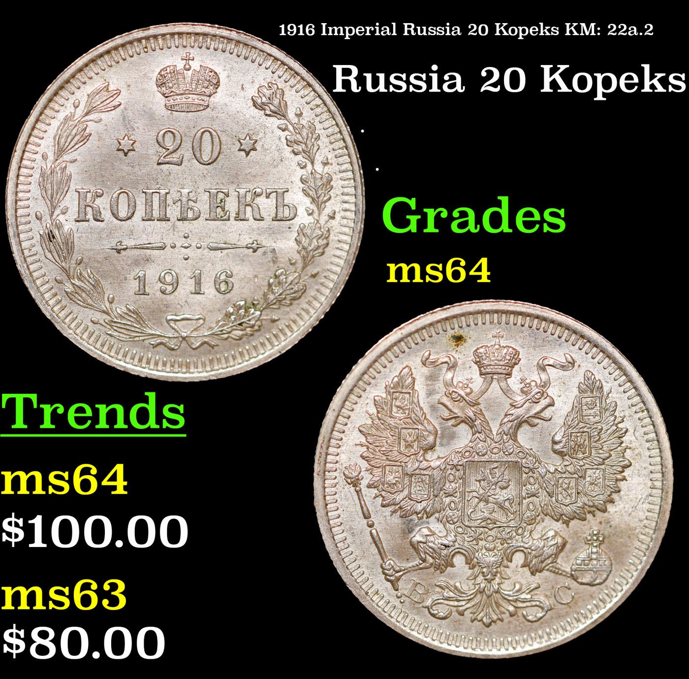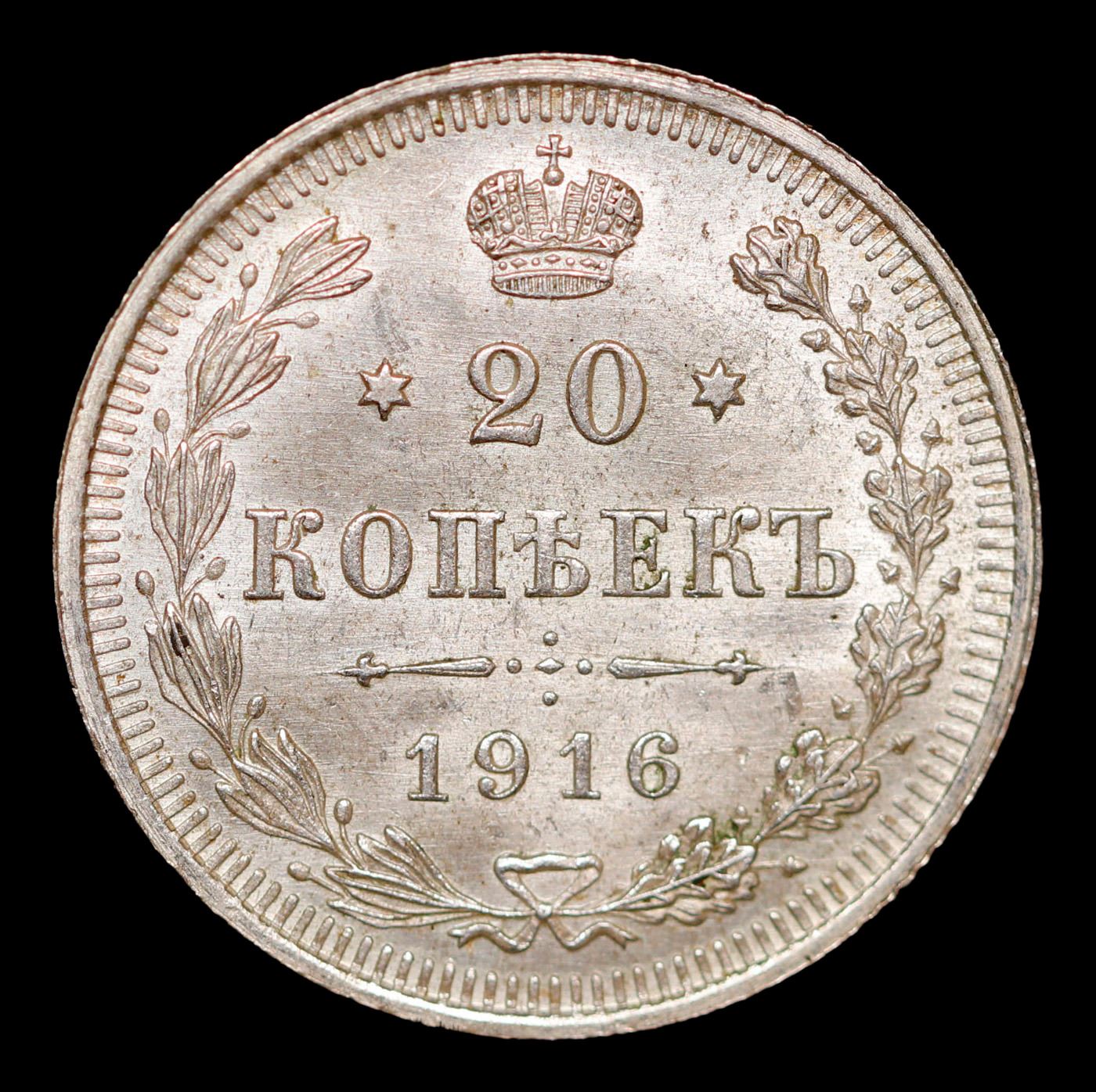 1916 Imperial Russia 20 Kopeks KM: 22a.2 Grades Choice Unc.