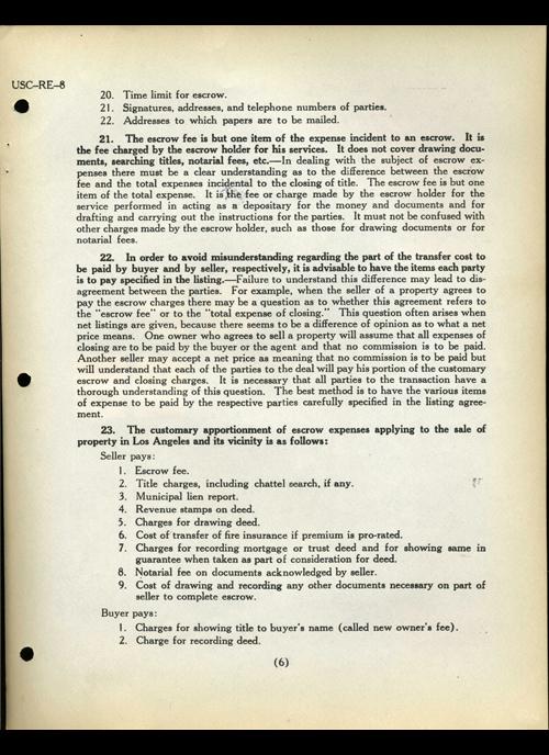 Scarce original collection page on the reverse of a real estate course manual; 4 scarce early pieces