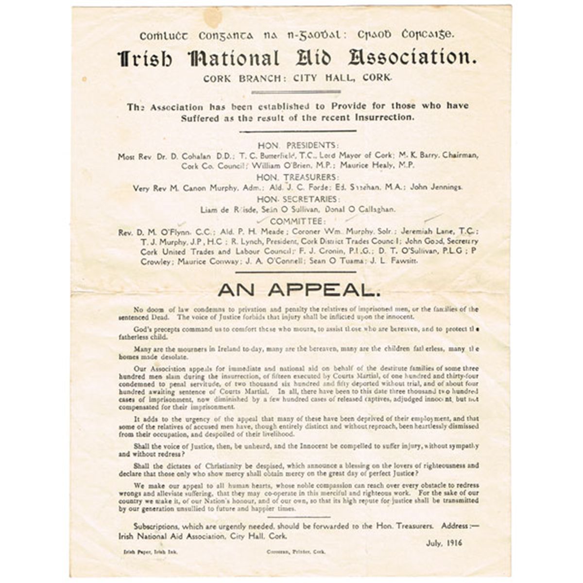 1916: Irish National Aid Association, Cork branch appeal broadside