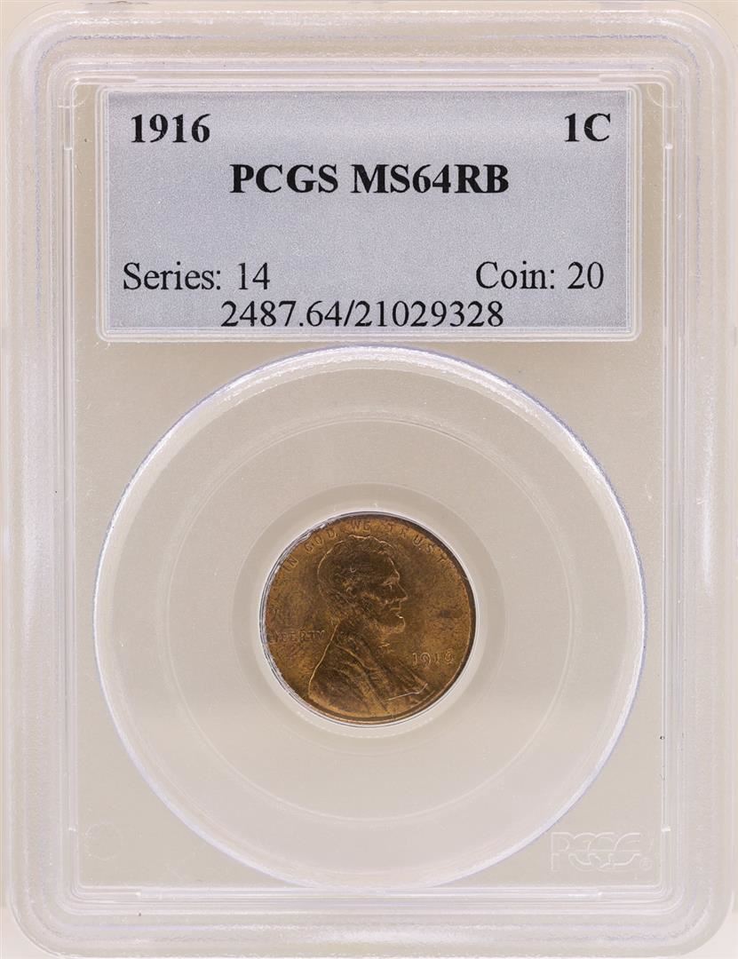 One 1916 Lincoln Cent Coin PCGS MS64RB. PCGS Certified.