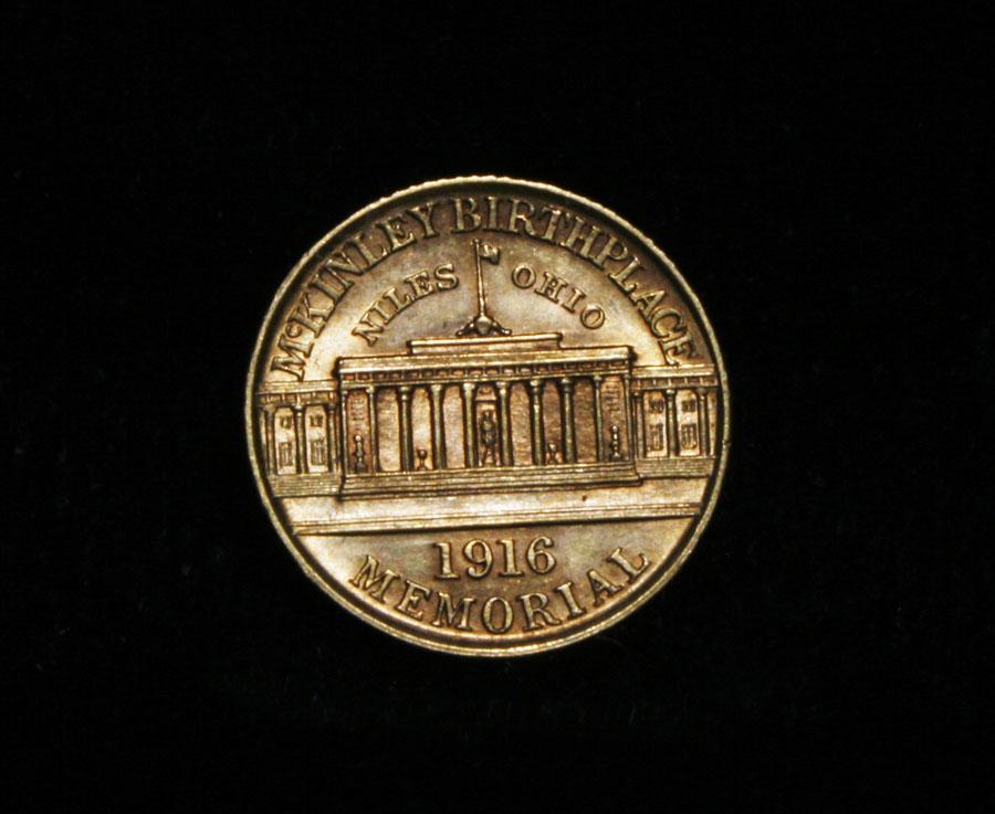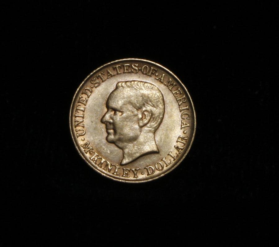 Terrific example of this scarce Gold commemorative. Issued in 1916 on the 75th Anniversary of McKinley's birth, but due to his untimely demise by an assassin, this commemorative was issued to help create a memorial in his hometown. When examining a McKinley Commem Points to examine for the first signs of wear include McKinley’s temple and the hair above his ear; on the reverse, check the pillar above the second numeral 1 and the base of the flagpole. The Wholesale Greysheet lists ms64 at $825 (note in xf the coin wholesales for $400, scarce in any grade). Estimated Value $850