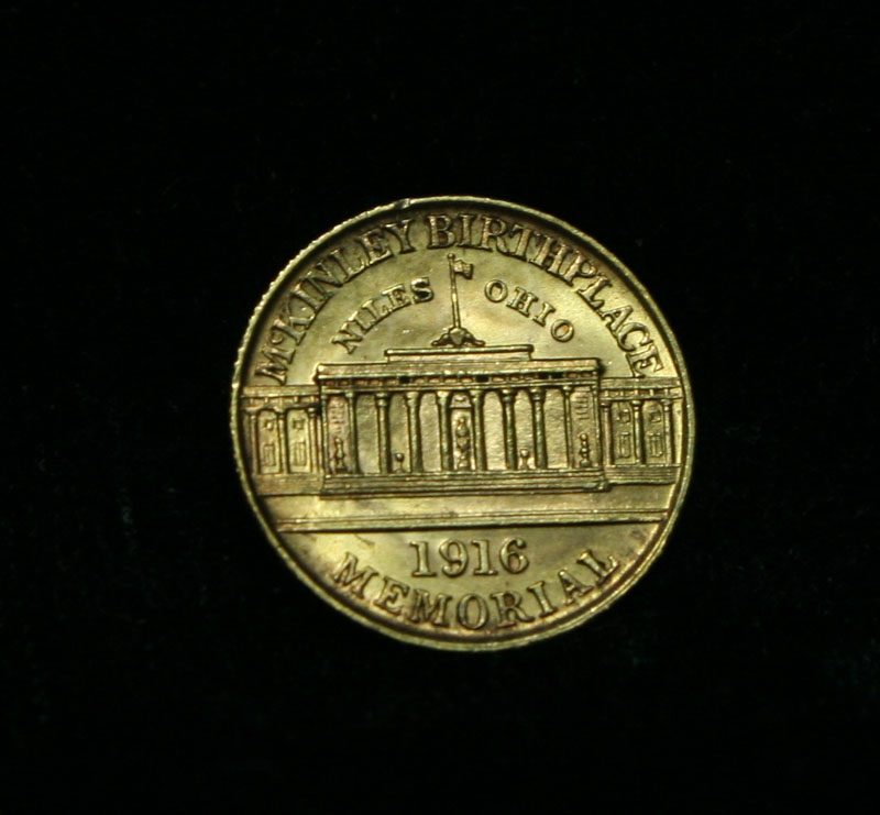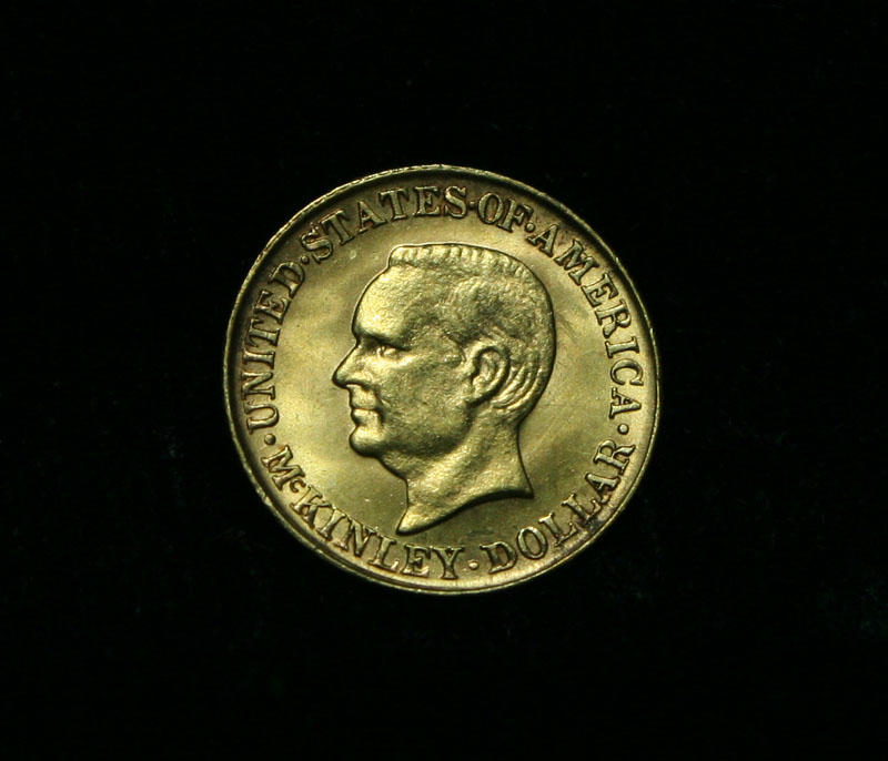 Excellent example of this scarce Gold commemorative. Great Luster, clean fields, a terrific coin. I will offer my personal buy back guarantee, that this coin is all original and will not come back Ungradeable by any major grading service. Issued in 1916 on the 75th Anniversary of McKinley's birth, but due to his untimely demise by an assassin, this commemorative was issued to help create a memorial in his hometown. When examining a McKinley Commem Points to examine for the first signs of wear include McKinley’s temple and the hair above his ear; on the reverse, check the pillar above the second numeral 1 and the base of the flagpole. The 1917 is much scarcer with Q. David Bowers estimating only 5,000 pieces were ever distributed. Coin World's Coin Values lists ms65 at $1500 and The Wholesale Greysheet lists ms65 at $1400. Estimated Value $1500.