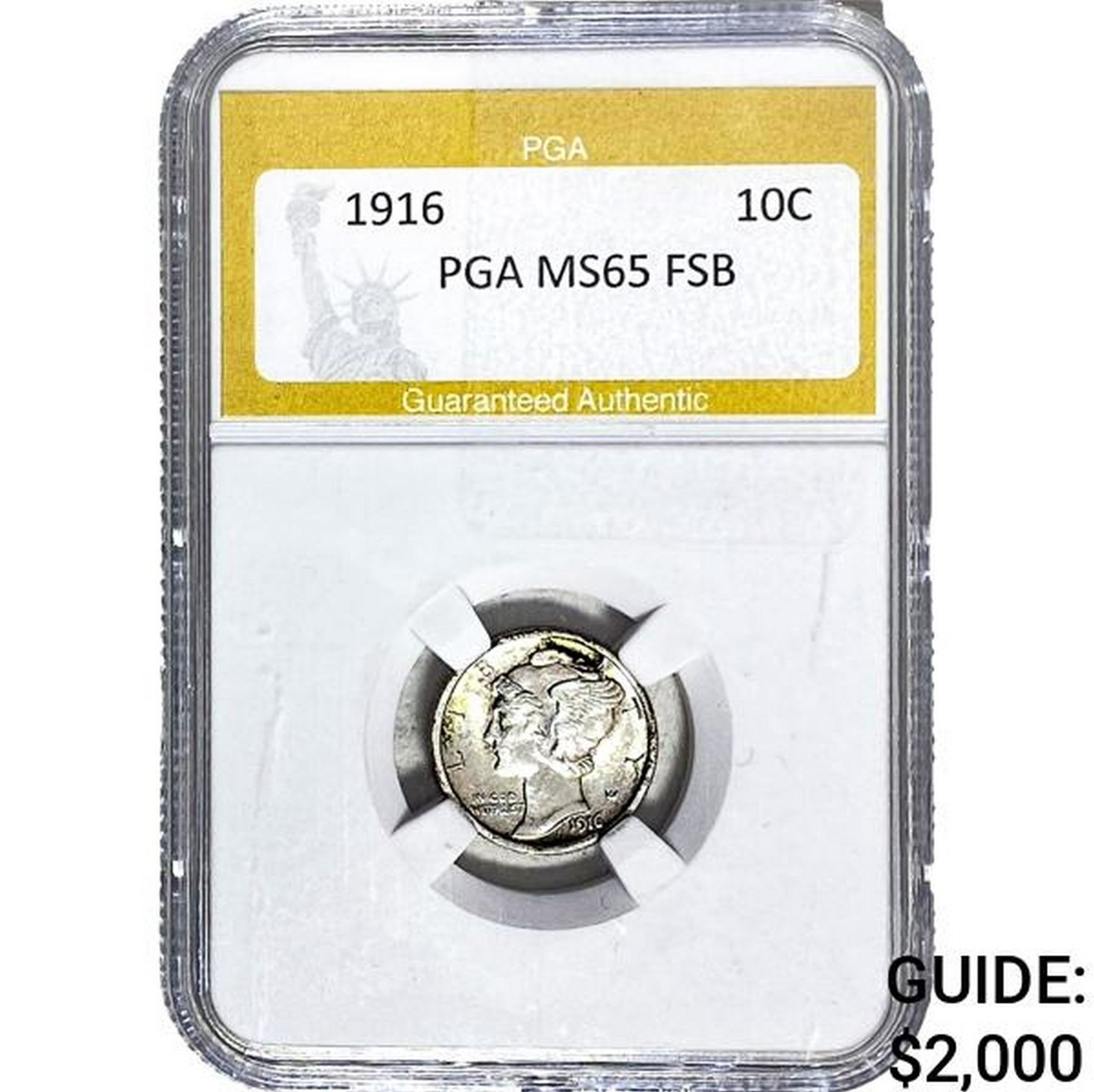 1916 Mercury Silver Dime PGA MS65 FSB