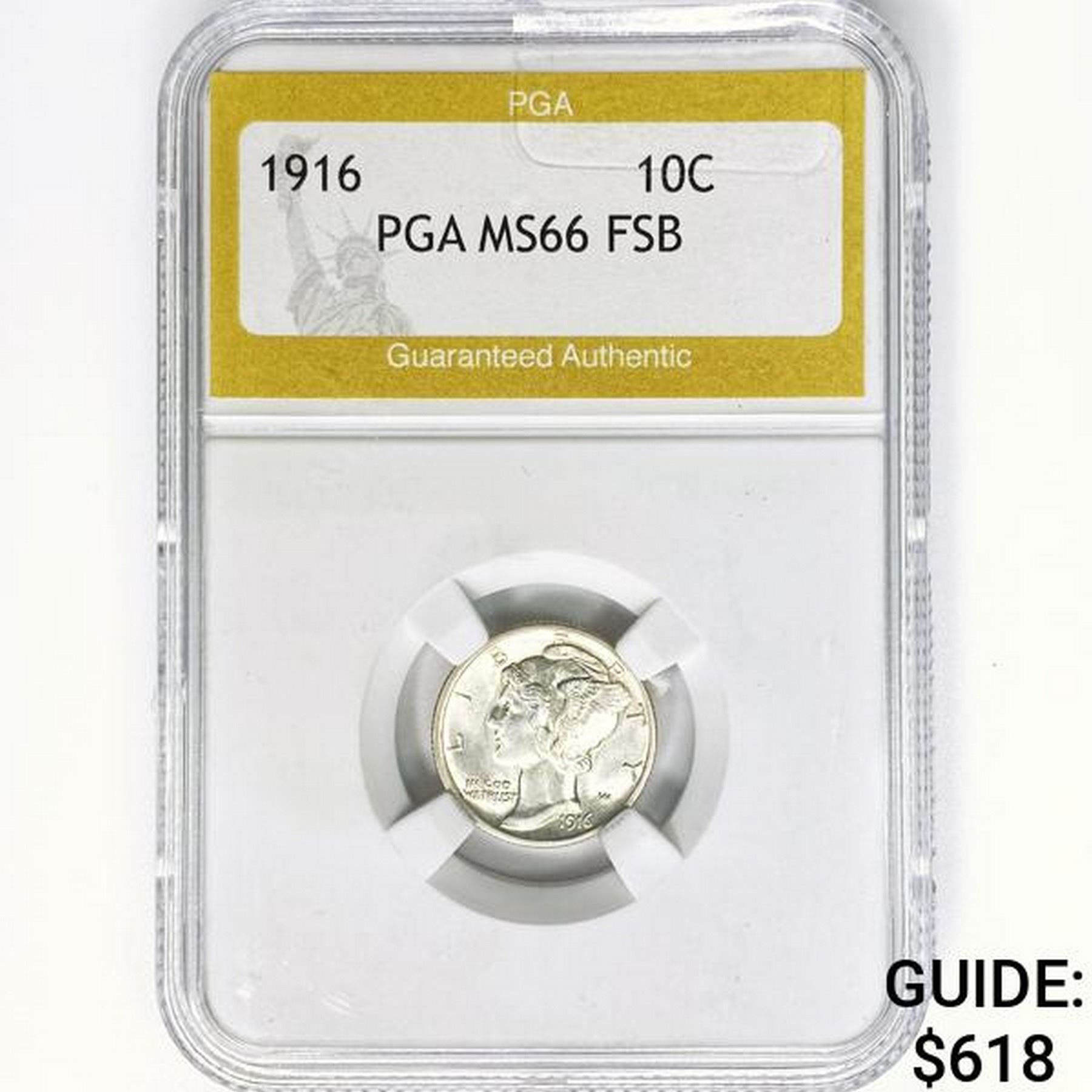 1916 Mercury Silver Dime PGA MS66 FSB