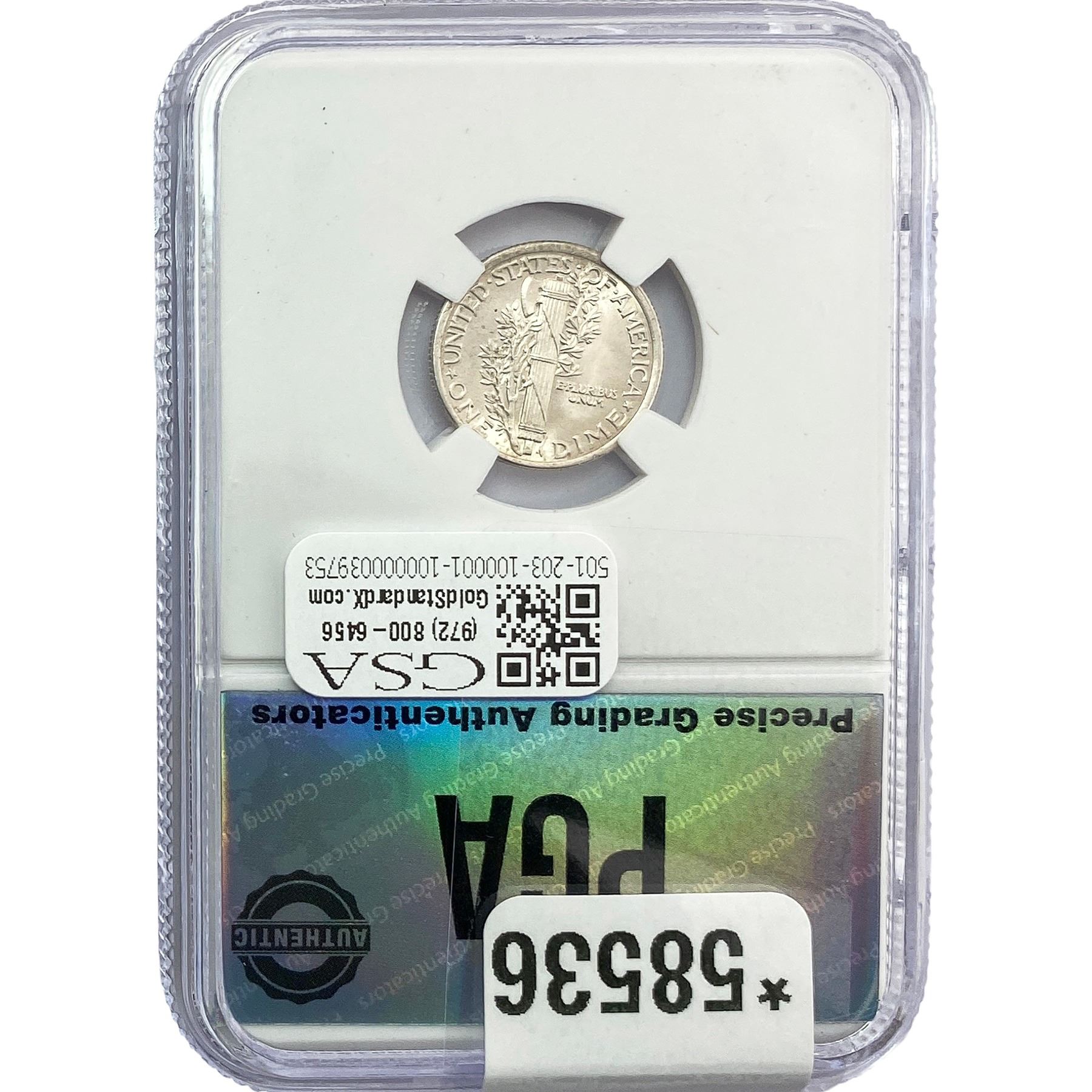COINS AND CURRENCY LISTED IN GSA’S CATALOG AS GRADED AND ENCAPSULATED BY PCGS, NGC, ANACS, ICG, PCGS CURRENCY, PMG, PCGS BANKNOTE GRADING, CMC OR ANY OTHER THIRD-PARTY GRADING SERVICE ARE LIKEWISE SOLD “AS-IS” EXCEPT AS EXPRESSLY SET FORTH HEREIN. ALL THIRD-PARTY GRADING SERVICE GUARANTEES, INCLUDING AUTHENTICITY, ARE THE SOLE RESPONSIBILITY OF THE THIRD-PARTY GRADING SERVICE AND NOT WARRANTIES OR GUARANTEES OF GSA. BIDDERS SHOULD CONTACT THESE THIRD-PARTY GRADING SERVICES DIRECTLY WITH RESPECT TO ANY CLAIMS OR QUESTIONS THEY MAY HAVE CONCERNING THEIR GUARANTEES AND WARRANTIES. BIDDERS ACKNOWLEDGE AND AGREE THAT AUCTIONEER IS NOT BOUND BY OR LIABLE FOR ANY OPINION OR CERTIFICATION BY ANY THIRD-PARTY GRADING SERVICE. REMOVAL OF A PRODUCT FROM ITS PROTECTIVE CASING OR HOLDER OR ALTERATION OF ANY COIN HOLDER WAIVES ALL RIGHTS CONCERNING THE PRODUCT CONTAINED THEREIN.