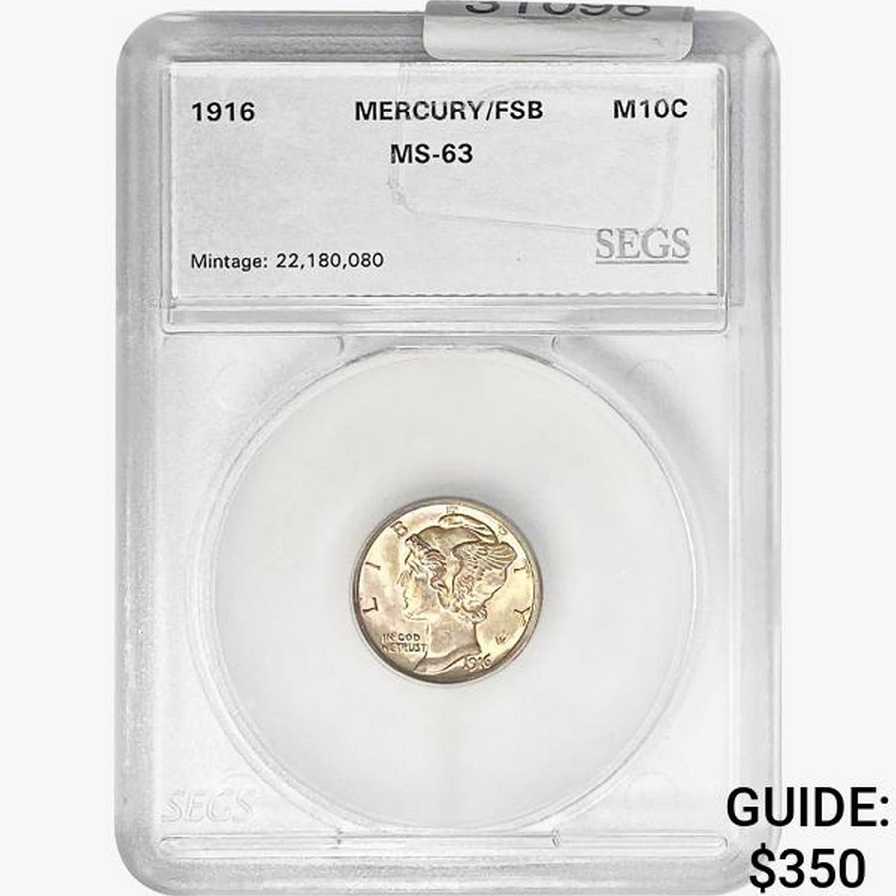 1916 Mercury Silver Dime SEGS MS63 FSB