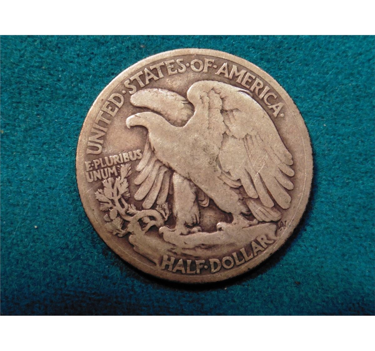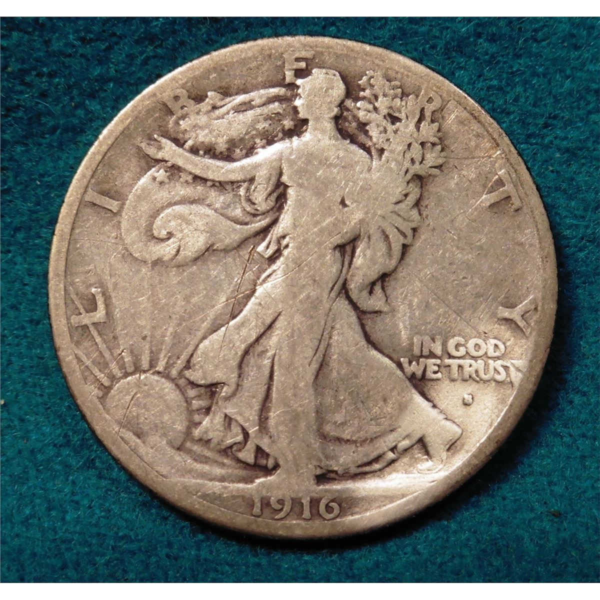1916 Obverse S Walking Liberty Half Dollar. Good. Red Book value $100.00.