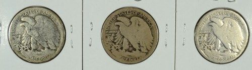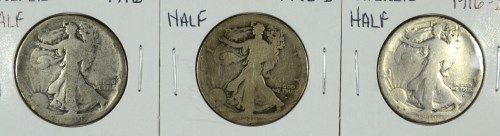 1916 P,D,S WALKING LIBERTY HALF DOLLARS AG