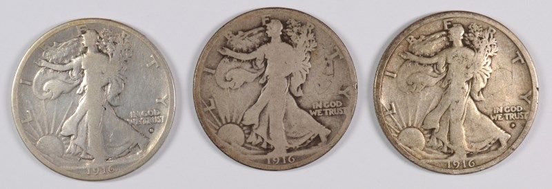 1916 (P, D, S) WALKING LIBERTY HALF DOLLARS