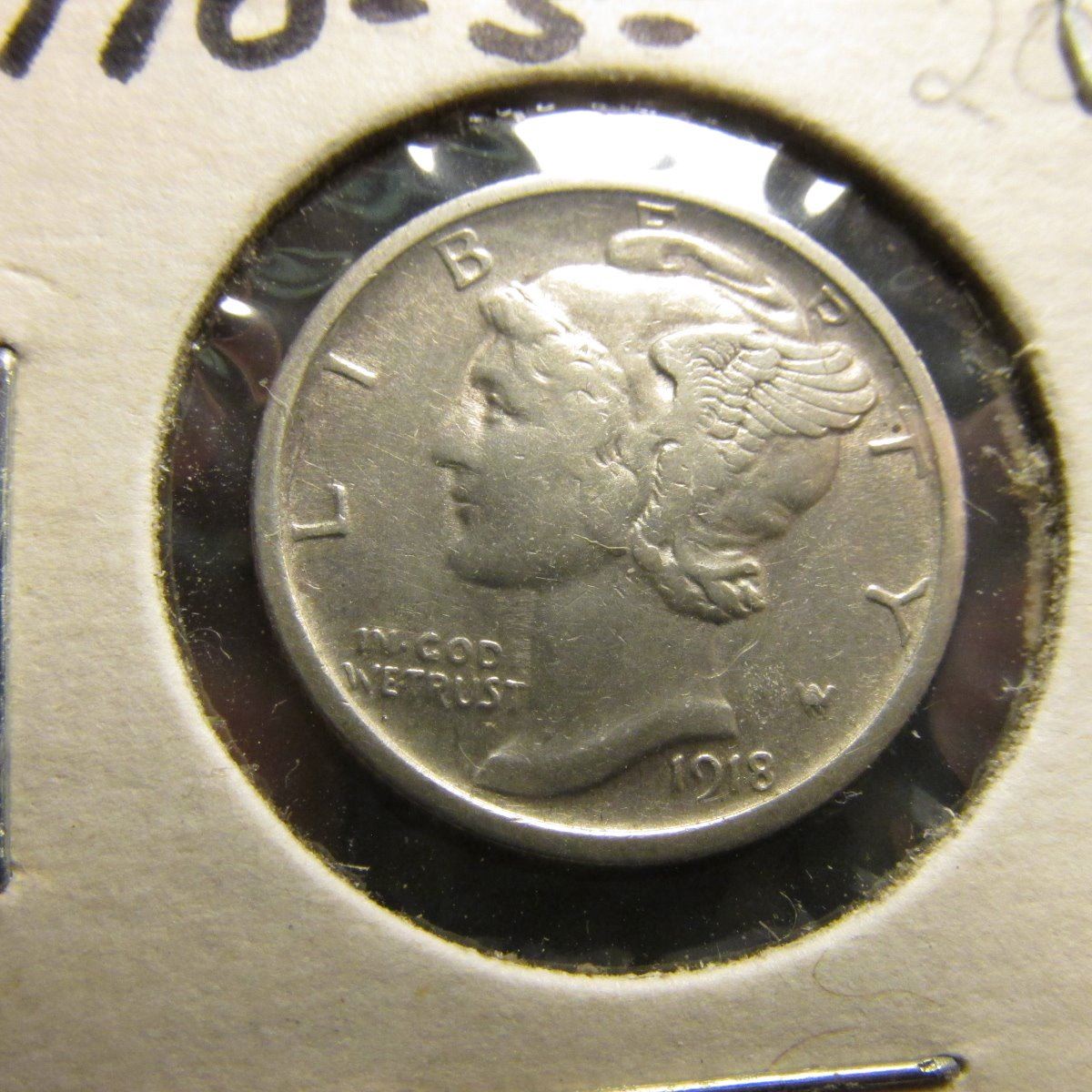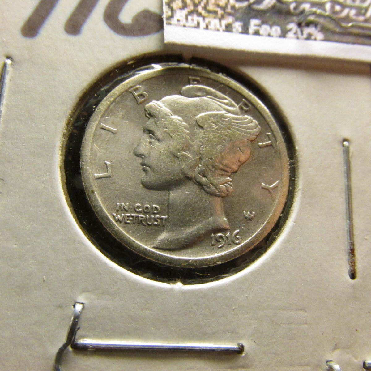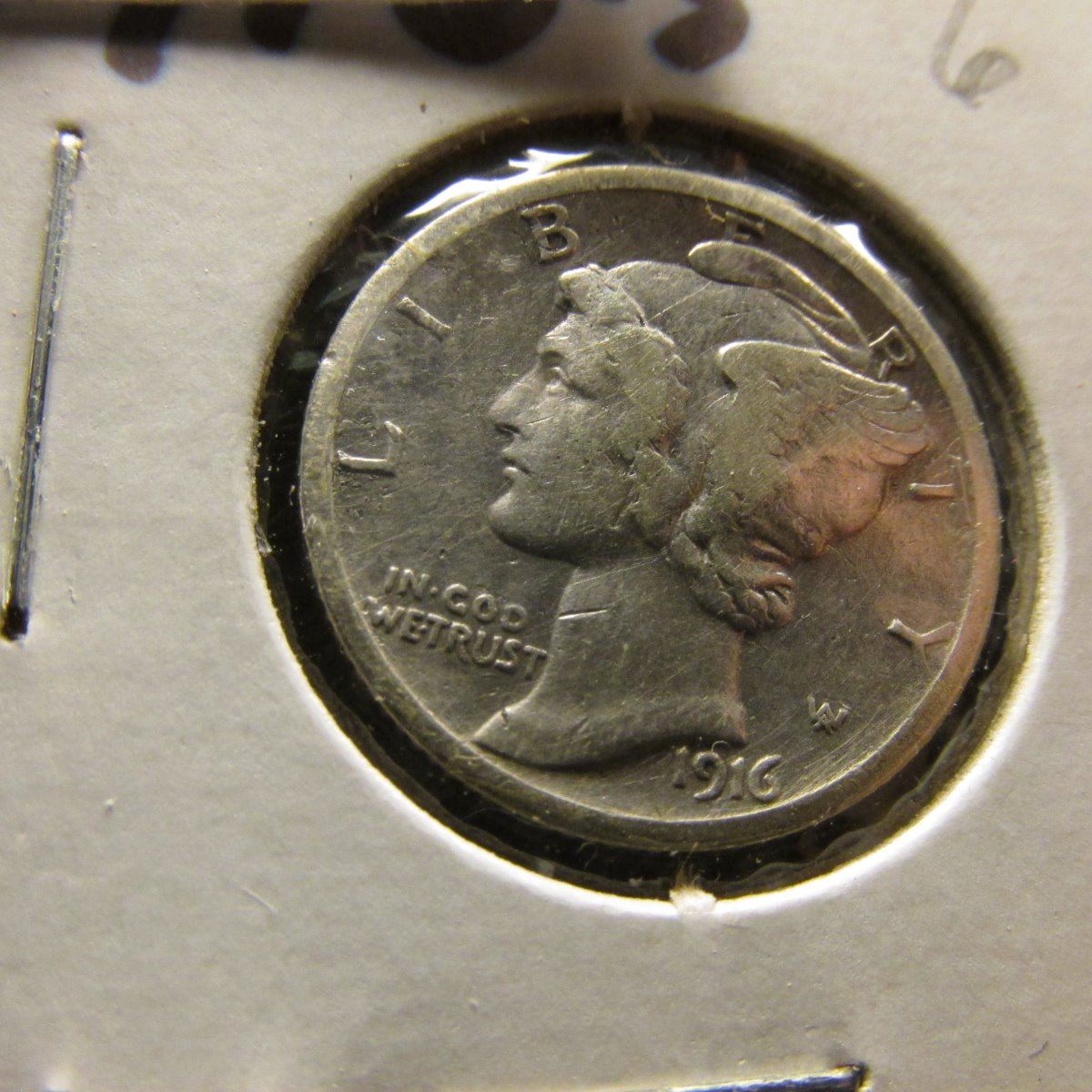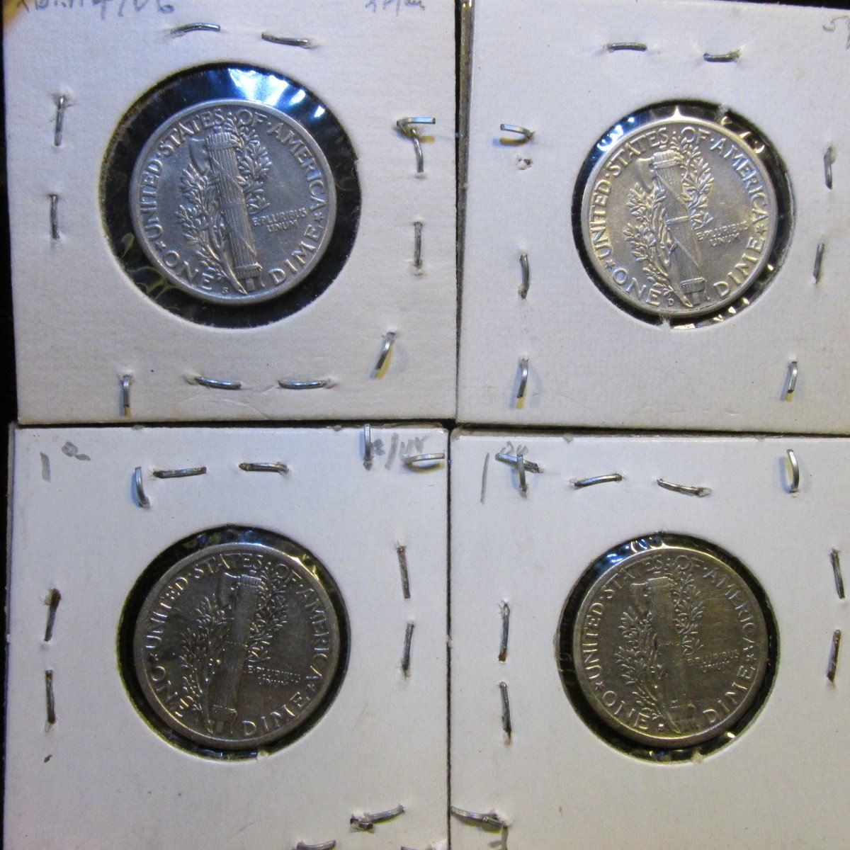 1916 P, S, 18 S, & 41 D Mercury Dimes, possibly cleaned, all VF-EF.