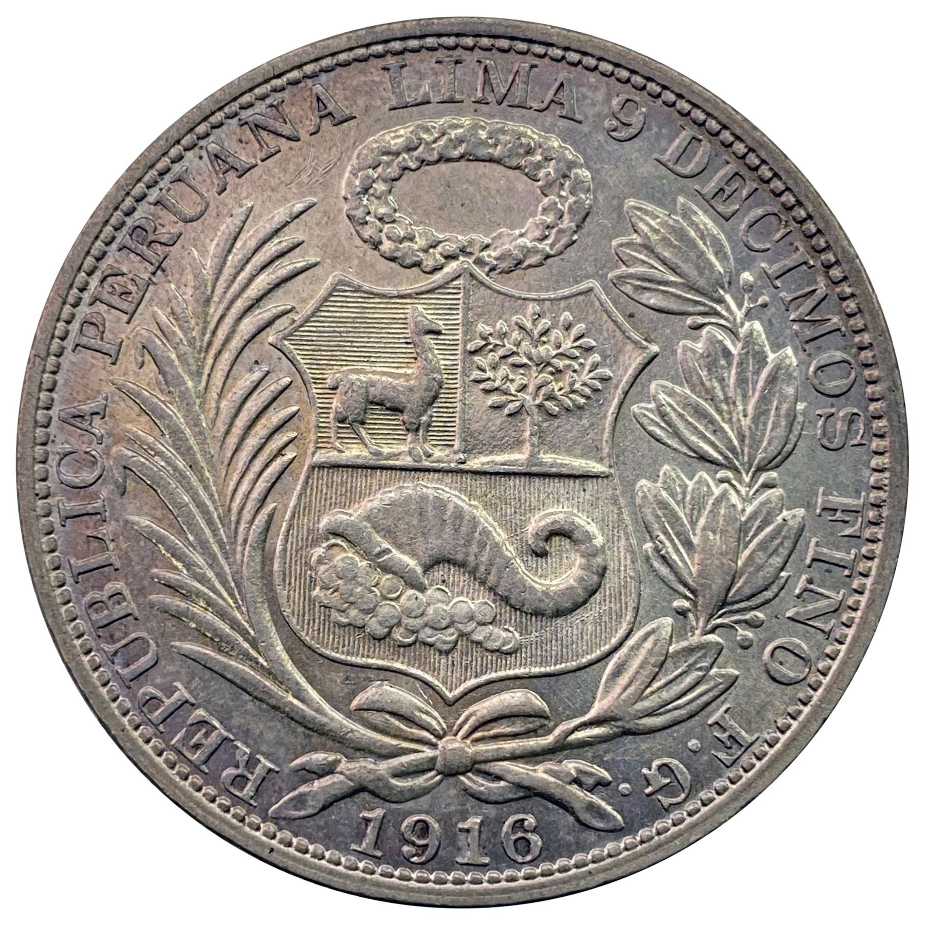 1916 Peru Silver Un Sol CLOSELY UNCIRCULATED