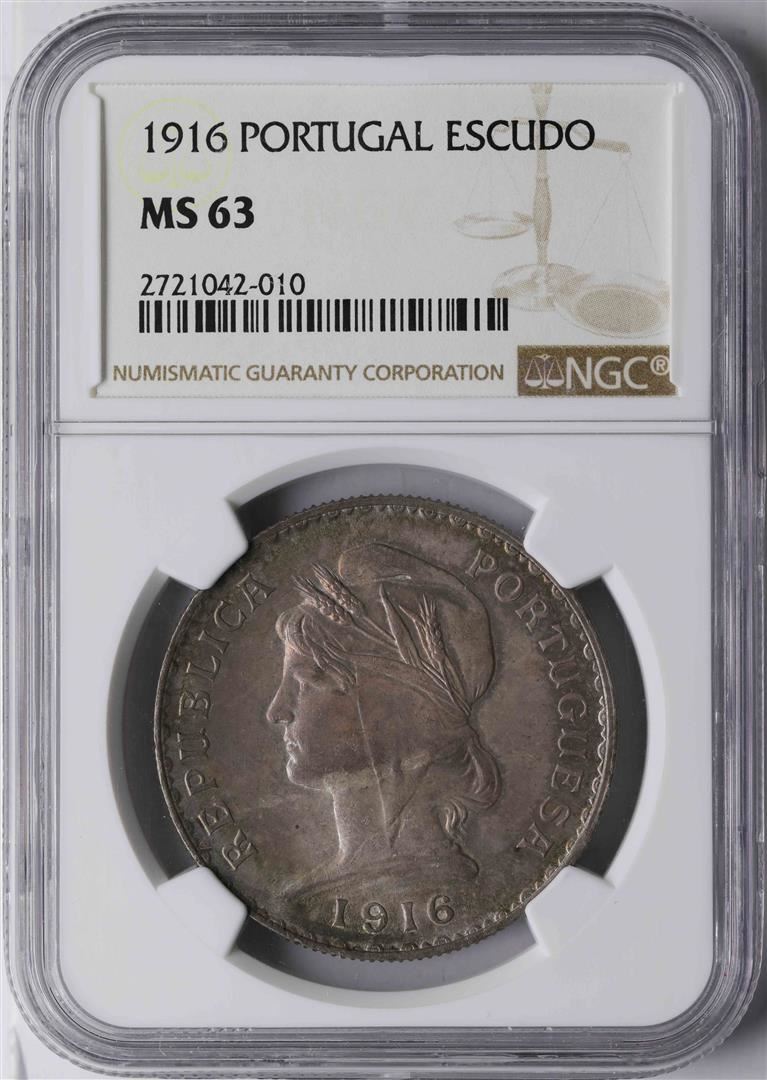 One 1916 Portugal Escudo Coin NGC MS63 Amazing Toning. NGC Certified.