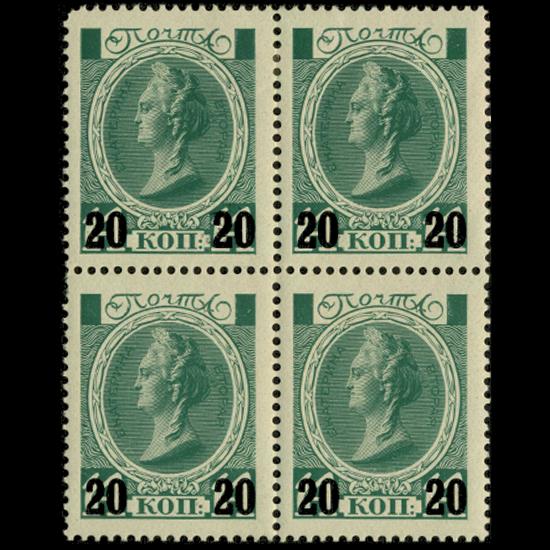 1916 RARE Russia 20 Kopek Mint Overprint Postage Stamp Block of 4 (STM-0330)