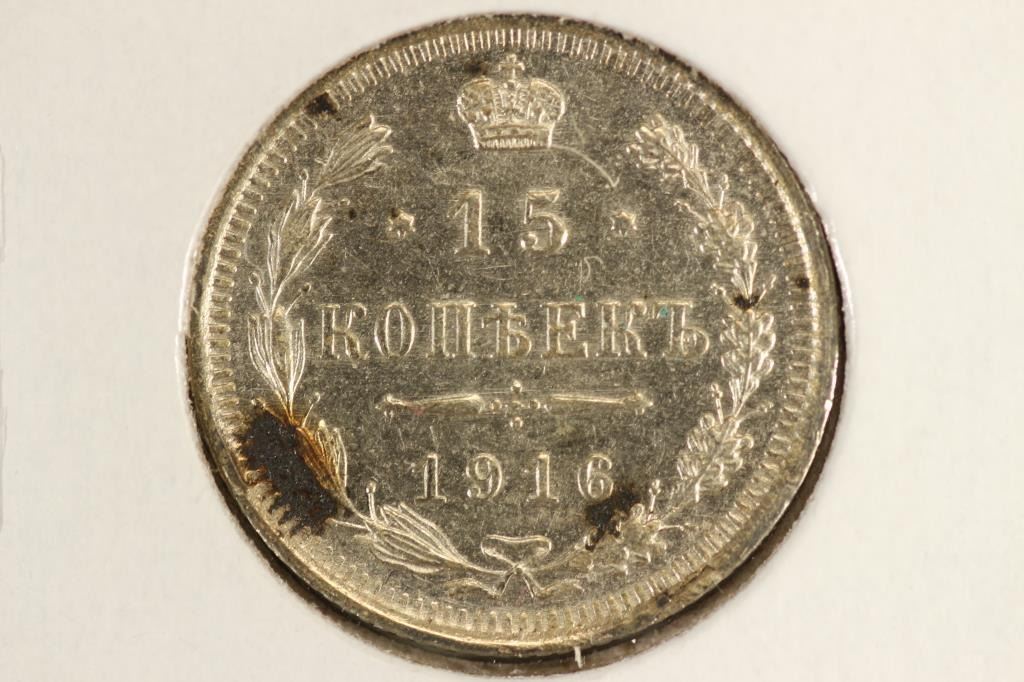 1916 RUSSIA SILVER 15 KOPECKS BU TONING SPOTS