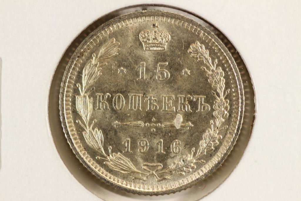 1916 RUSSIA SILVER 15 KOPEKS BU