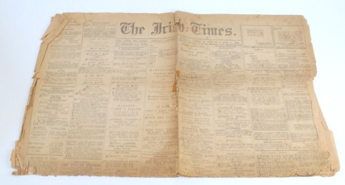 Irish Times multiple edition covering April 28, 29 and May 1 1916. Also The Freeman's Journal Special Edition covering April 26,27,28,29 and May 1,2,3,4 and 5 1916. Covering the events of the rebellion both in poor condition. Also with Poblacht na hEireann War News No. 3, Evening Herald 27 October 1925 covering the death of Darrell Figgis and 1975 newspaper supplements covering the bi-centenary of the birth of Daniel O'Connell and the death of Eamon de Valera