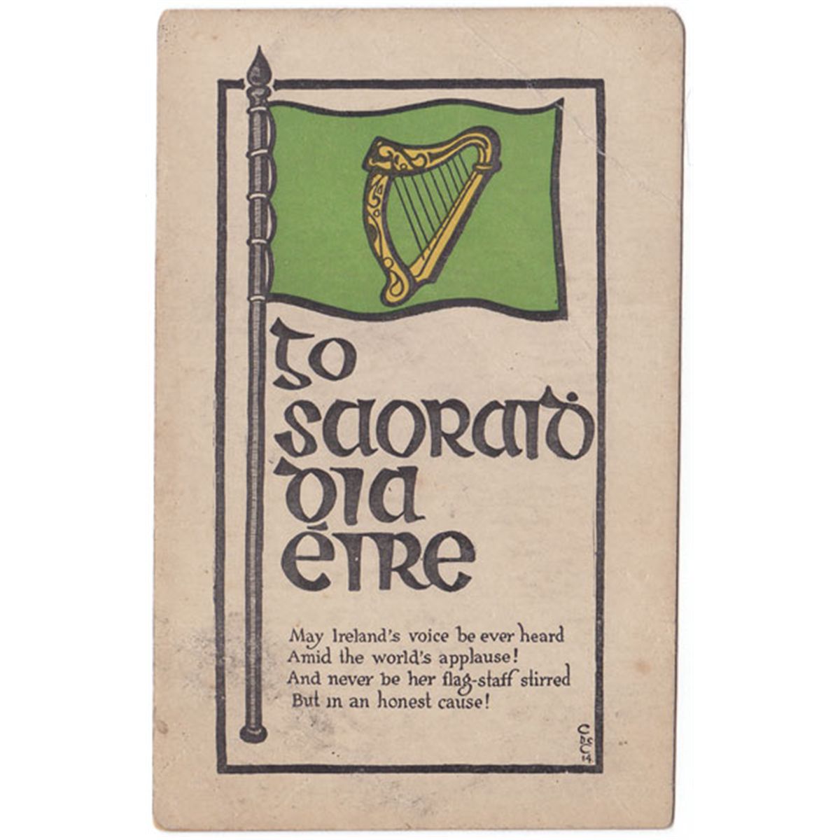 A good selection, P. H. Pearse, Joseph Plunkett, Thomas MacDonagh, Eamonn Ceannt, Thomas J. Clarke, Sean MacDiarmada, James Connolly. Also with 'May God Free Ireland' political postcard with Sinn Féin newspaper was the Déanta in Éireann symbol on reverse. (8 items)