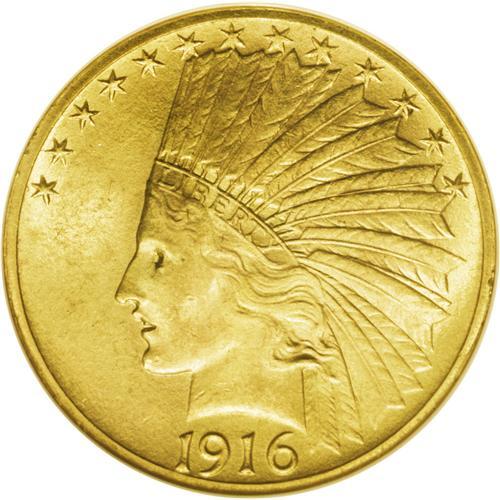 <B>1916-S<$10> MS63 NGC.</B></I> An attractive orange-gold example, with good luster and a few light, grade-consistent abrasions. More elusive at this level than might be expected, especially given small hoards that have come on the market in recent years. Census: 24 in 63, 31 finer (9/06).