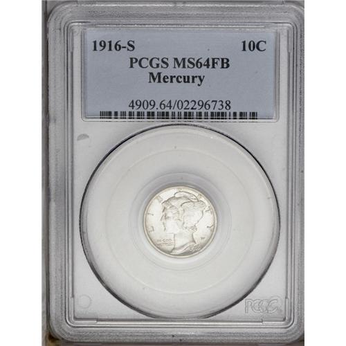 1916-S 10C MS64 Full Bands PCGS. Appealing light-silve 1916-S[10C] MS64 Full Bands PCGS.