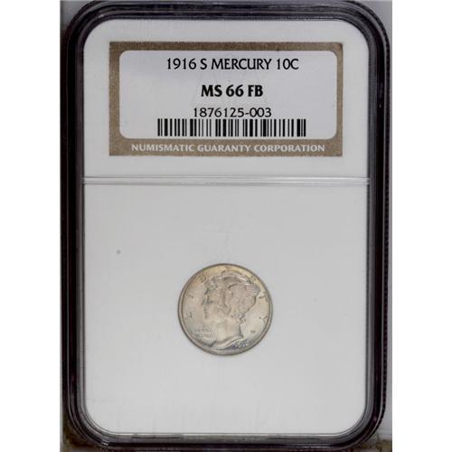 1916-S 10C MS66 Full Bands NGC. A satiny Premium Gem w 1916-S[10C] MS66 Full Bands NGC.