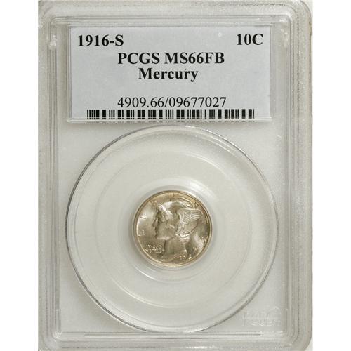 <B>1916-S 10C MS66 Full Bands PCGS.</B></I> This is a pretty first-year representative from the San Francisco Mint. The lustrous light-gray surfaces are imbued with accents of apricot and rose. Lovely and nearly pristine. Population: 61 in 66 Full Bands, 12 finer (4/07).<BR><BR><b>Shipping:</b> Coins & Currency (<a target="_blank" href="http://www.heritageauctions.com/common/shipping.php">view shipping information</a>)