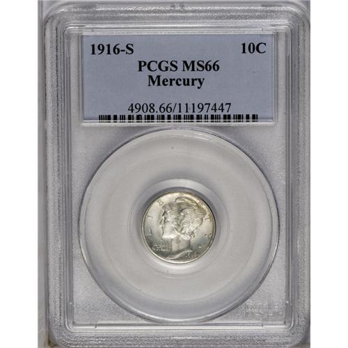 <B>1916-S<10C> MS66 PCGS.</B></I> Delicate gold-tan color adheres to highly lustrous surfaces. Sharply struck and free of distracting marks.