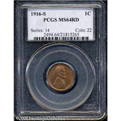 <B>1916-S 1C MS64 Red PCGS.</B></I> A gorgeously preserved near-Gem with rich, deep crimson color and good luster. Well struck for this often mushy issue. Remarkably free from most evidence of carbon.<BR><I>From The Kim Mitchell Collection, Part Two.</B></I> Lot:5439