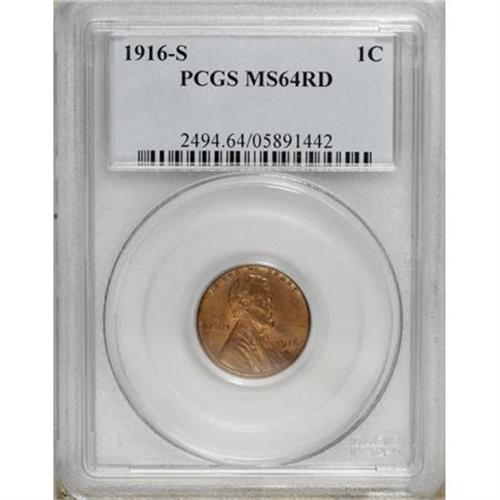 <B>1916-S 1C MS64 Red PCGS.</B></I> The predominantly copper-orange surfaces of this near-Gem are slightly mellowed, yet entirely unturned. Splashes of magenta appear at the margins of this well-defined and pleasing piece. PCGS has graded 22 finer Red representatives (10/07).<BR><BR><B>Coin Engraver:</B> Victor D. Brenner<BR><BR><b>Shipping:</b> Coins & Currency (<a target="_blank" href="http://www.heritageauctions.com/common/shipping.php">view shipping information</a>)