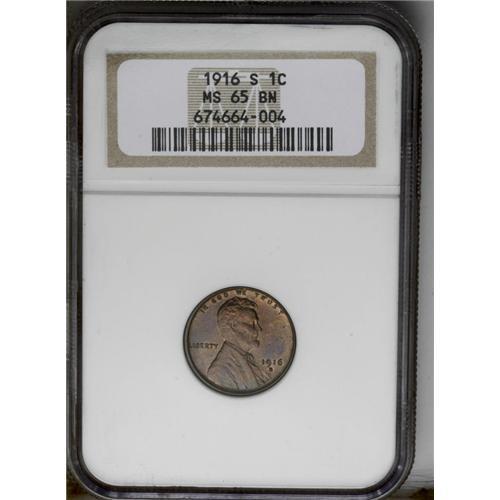<B>1916-S<1C> MS65 Brown NGC.</B></I> This solidly struck cent still shows traces of original red around the rims. As befits a Gem, the obverse and reverse show few marks.
